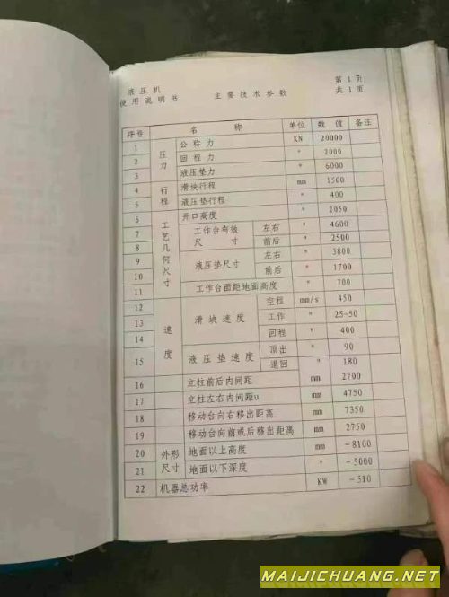 合肥锻压2000吨滑块行程:1500mm开口高度:2050mm工作台. |